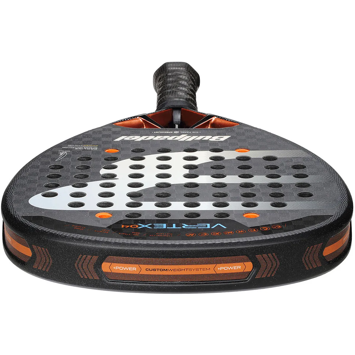 Must-halli-oranži disainiga Bullpadel Vertex 04 tähistab uut verstaposti Vertex-seeria ajaloos. Tänu mitmetele tehnilistele täiustustele on see reket 10% responsive’im, 23% aerodünaamilisem, 8% suurema sweetspot’iga (ideaalne löögiala) ning pakub 38% vähem vibratsiooni. Tegemist on mudeliga, mida kasutab ka professionaalne padelimängija Juan Tello.
